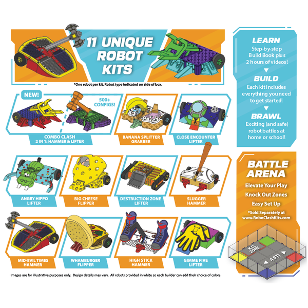 BRAWL: Each robot is fun and safe to battle at home or school. Learn strategy, drive skill, and troubleshooting as you have a blast battling your robot. Our optional RoboClash Arena brings even more excitement to your battles!